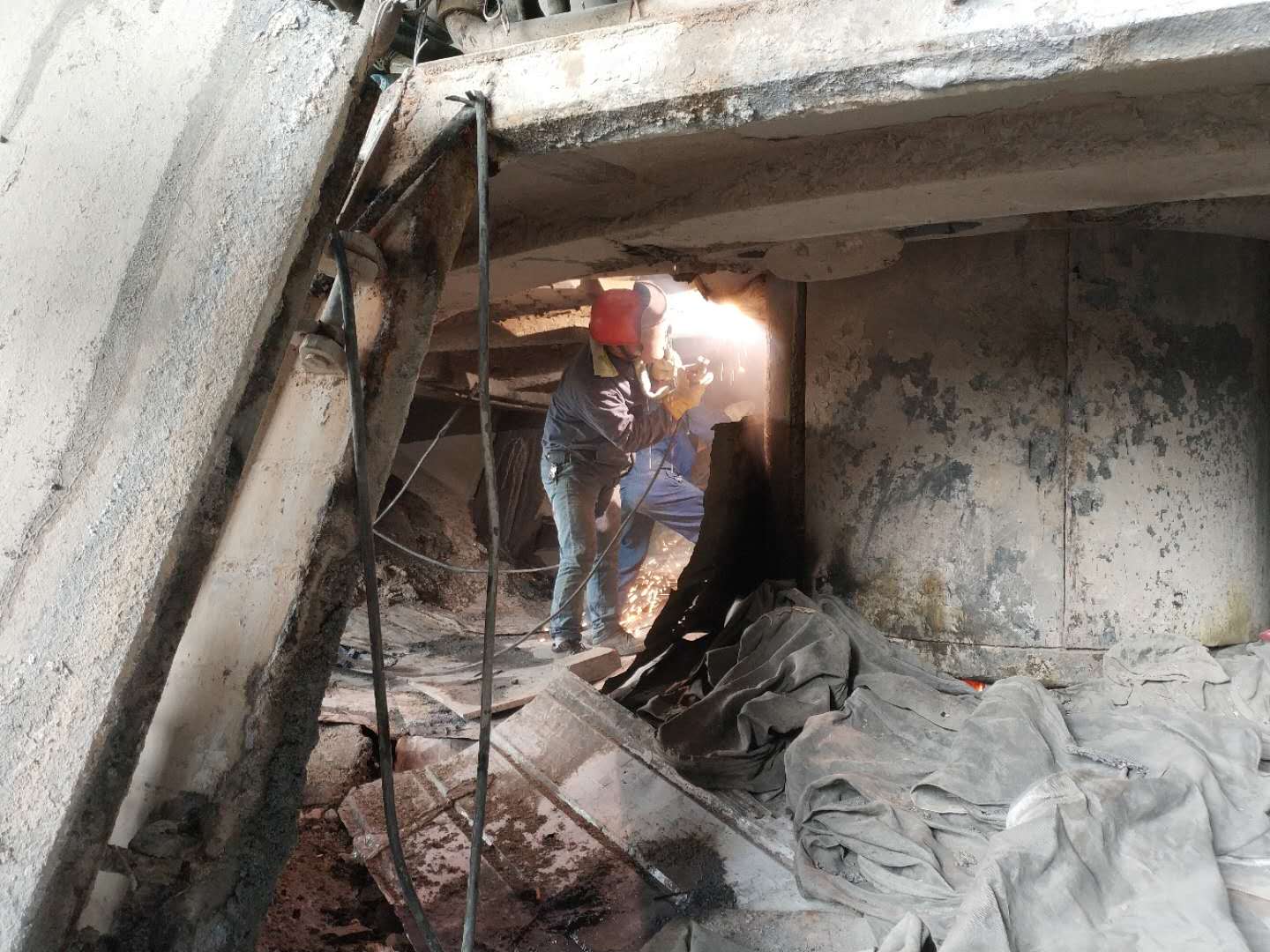 維修人員正頂著爐內(nèi)高溫,對(duì)電極本體進(jìn)行檢查,并修復(fù)爐內(nèi)漏點(diǎn)。
