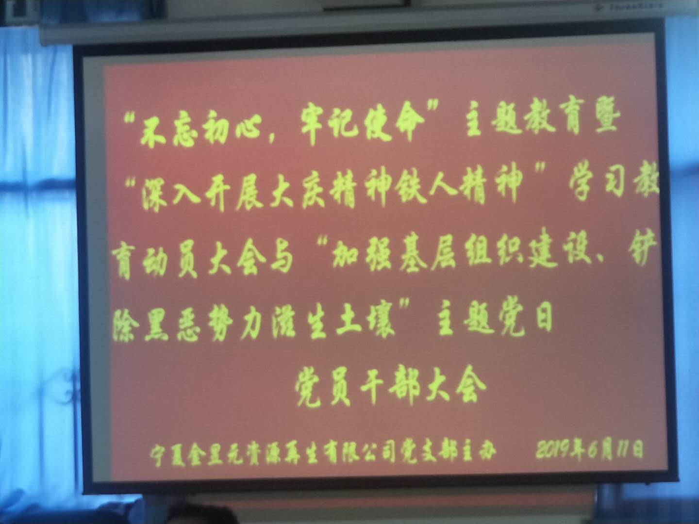 2019年6月11日16時,資源再生有限公司黨支部組織全體黨員、預備黨員、入黨積極分子、技術員以上管理人員、職工代表等,召開“不忘初心、牢記使命”主題教育暨“深入開展大慶精神鐵人精神”學習教育動員大會與“加強基層組織建設、鏟除黑惡勢力滋生土壤”主題黨日黨員干部大會。