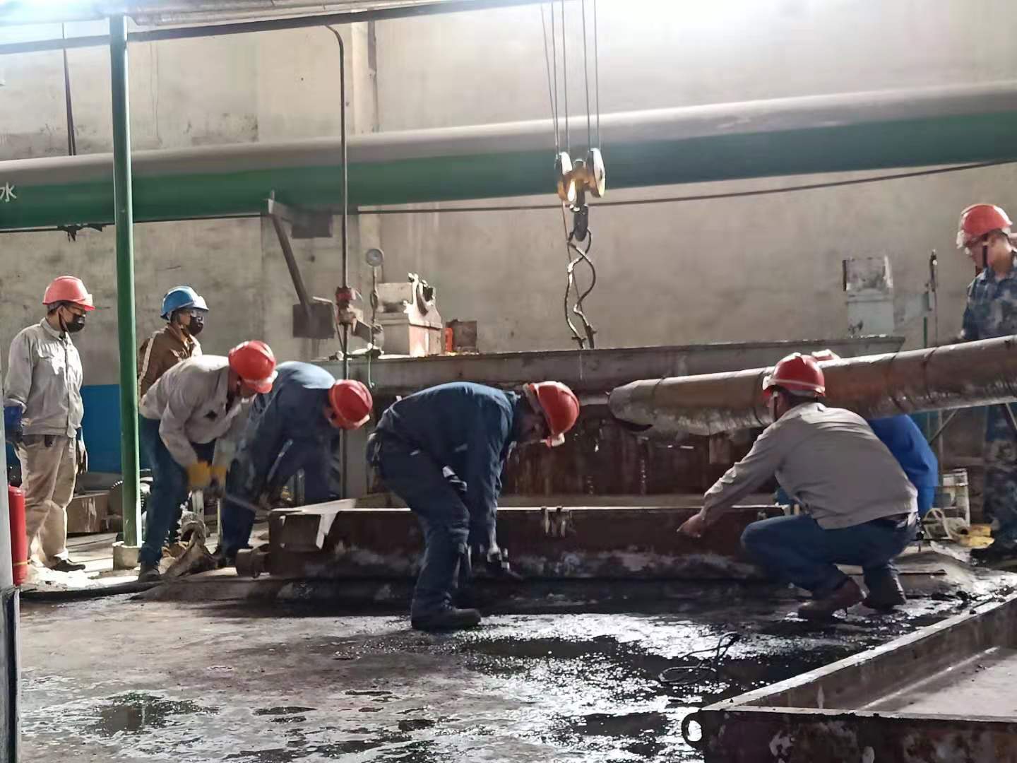 清晨,我看到兢兢業(yè)業(yè)的管理人員和朝氣蓬勃的年輕同事,他們“武裝上陣”頭戴安全帽,手帶防護(hù)手套。拿著各類方案和各類工具,快速地奔向各個檢修點。我看到他們忙碌的身影和為了完成檢修任務(wù)而焦灼的神情,大大小小的設(shè)備里三人一伙,兩人一組,有更換閥門的,有更換閥欄的,每個人手上、身上都沾滿了油污,他們沒有抱怨,只是默默地付出著。