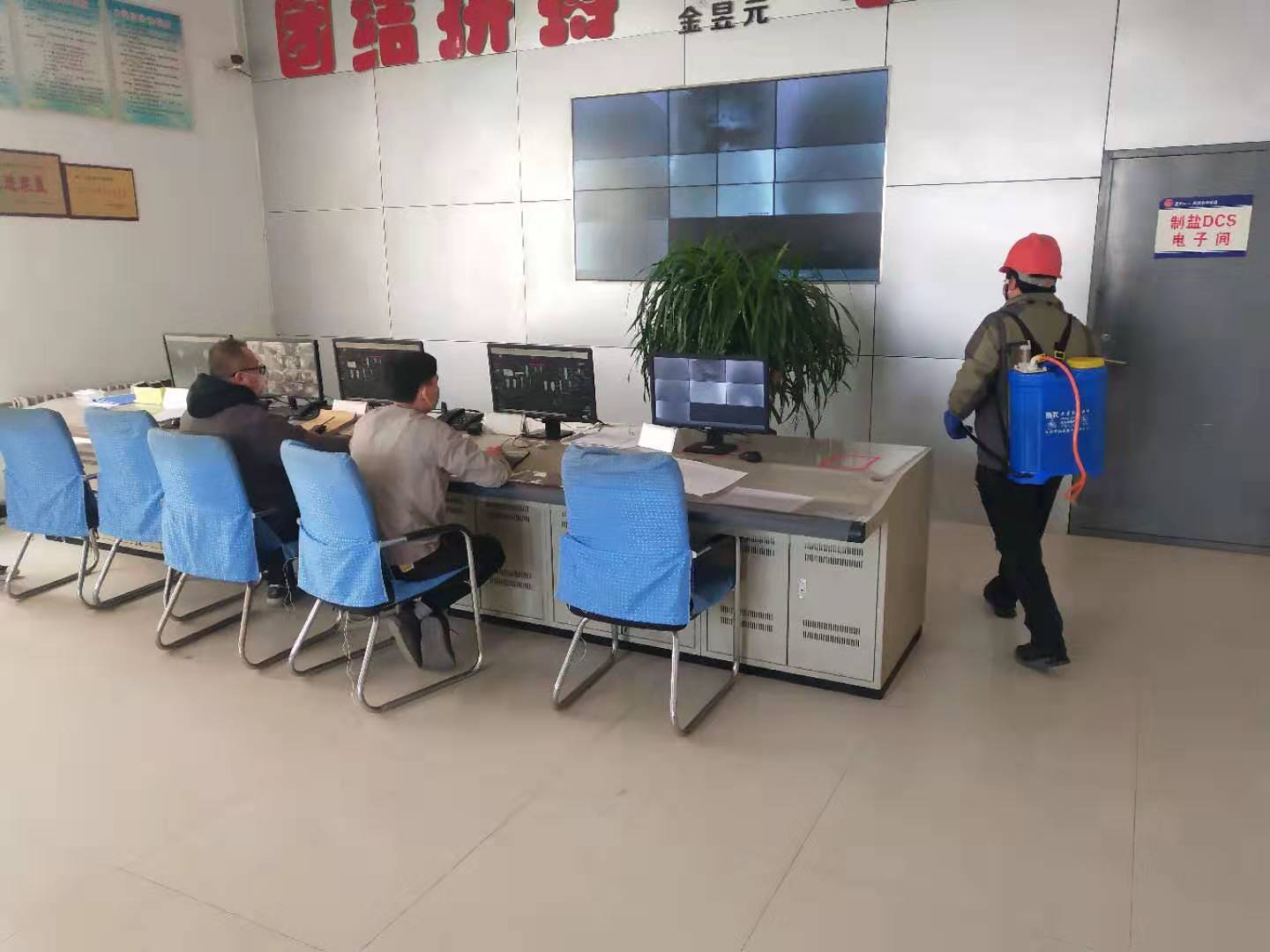 8、各裝置、科每日分別于8-9時、14-15時、20-21時對辦公區(qū)域、主控室、值班室、操作場所、生產(chǎn)廠房等區(qū)域進行消毒工作,并做好相關(guān)記錄。熱力裝置負責對進入煤場路口鋪設(shè)草簾或棉質(zhì)墊子,安排人員每隔二小時向上噴灑消毒水,鹽硝裝置在小廣場護欄間路口鋪設(shè)草簾或棉質(zhì)墊子,安排人員每隔二小時向上噴灑消毒水,對進廠車輛輪胎進行消毒。