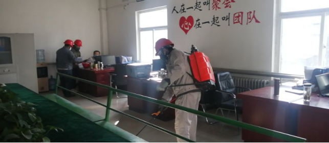 在崗位辦公室消毒。