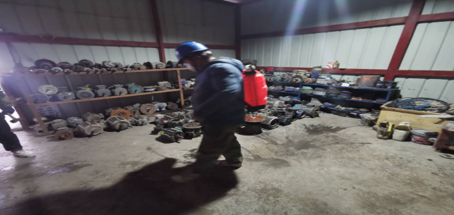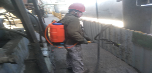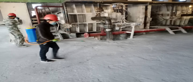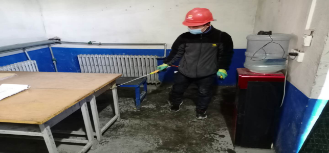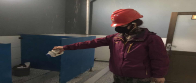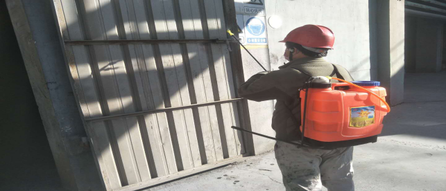 對(duì)廠(chǎng)區(qū)衛(wèi)生間消毒。