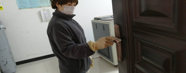 擦拭操作臺(tái)、門(mén)把手,工作的有條不紊。
