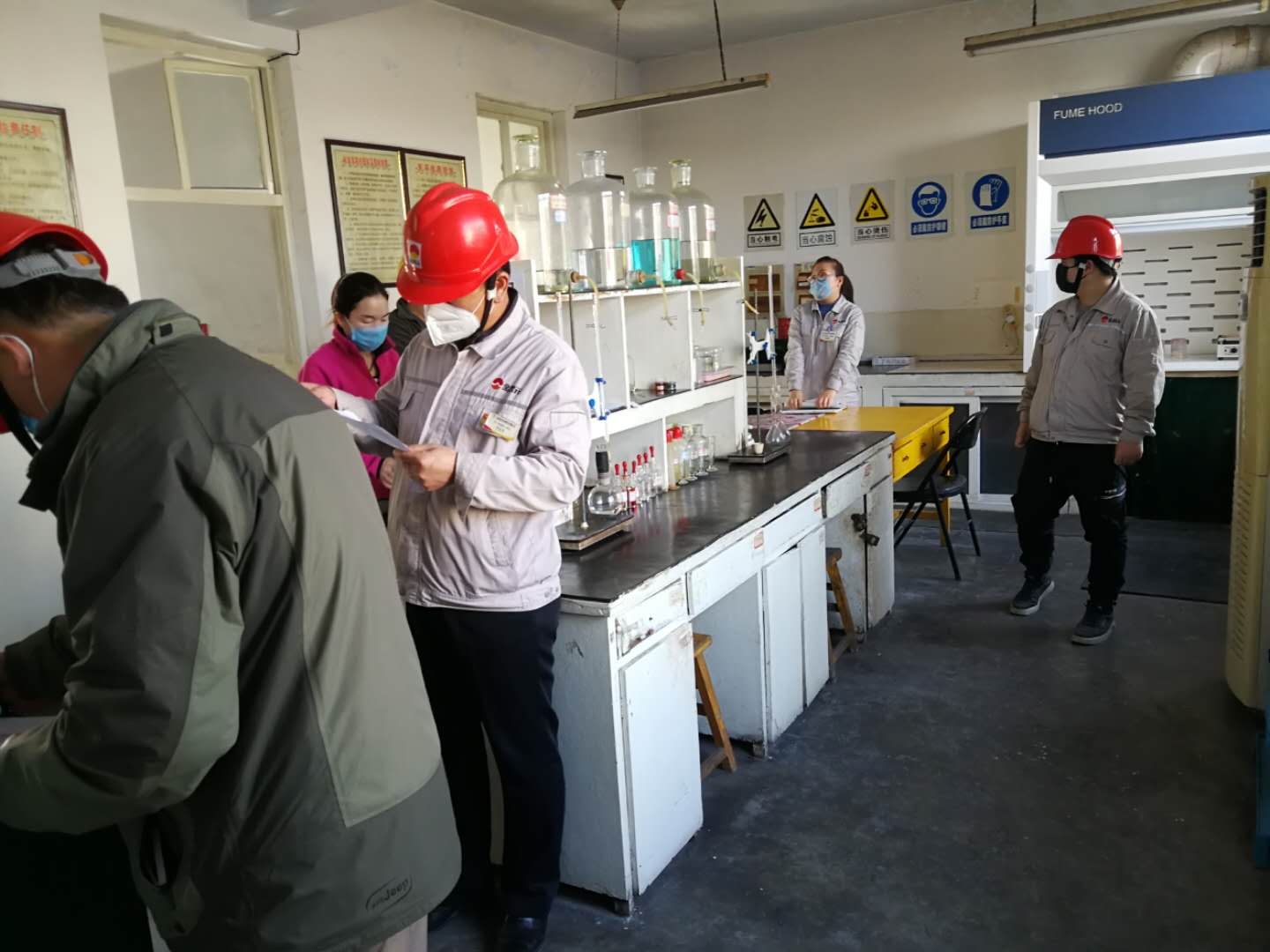 每到一個(gè)裝置,檢查人員都會(huì)詳細(xì)的詢問人員測溫情況以及辦公用品的消毒情況。王總強(qiáng)調(diào):“一定要嚴(yán)格執(zhí)行各項(xiàng)防疫規(guī)定,杜絕疫情蔓延途徑,保障員工安全”。從南大門到原料裝置,從電石爐到化驗(yàn)室,從成品裝置到生料裝置,檢查人員的腳步踏遍了資源再生公司的每一個(gè)值班室和辦公室,真正無死角的對(duì)疫情防控工作做了檢查。