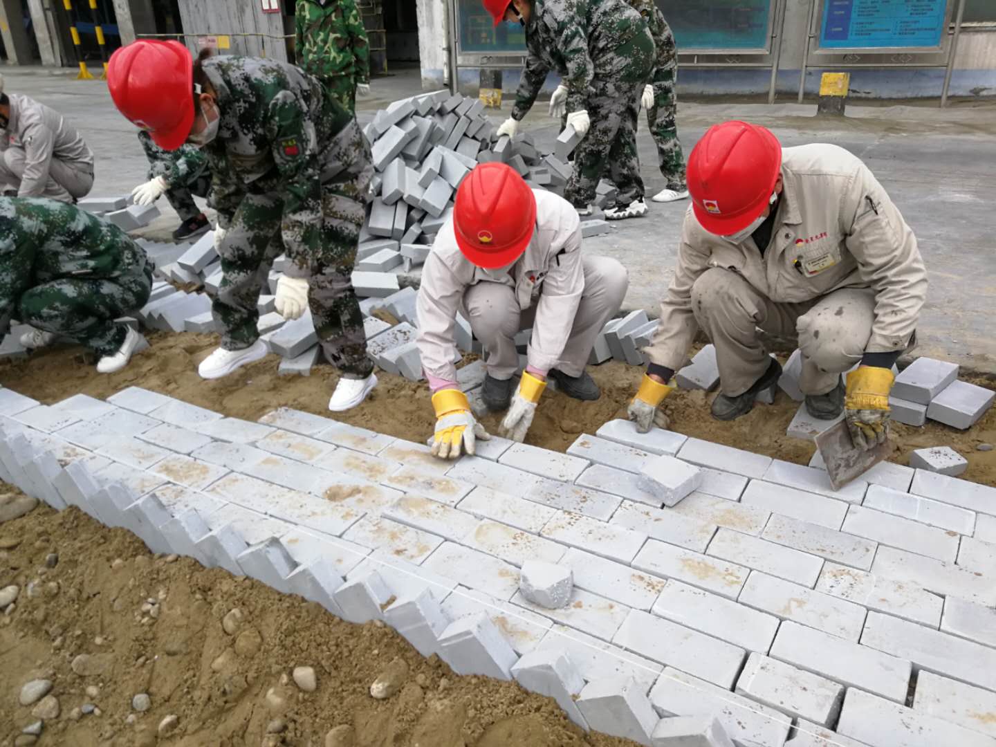 3月23日早上8:30分,資源再生公司組織所有日勤人員到成品裝置東側綠化帶內勞動。說是勞動,其實就是用青磚將綠化帶旁邊多余的土地鋪成平整的小路。雖然大家不是專業(yè)的泥瓦匠,也沒有專業(yè)的工具,但大家想方設法將青磚鋪的平整而又美麗。說說笑笑中手下的工作一點兒也沒有落下。時間在忙碌中悄悄溜走,大約一個小時,原來的沙土地變成了平整的磚地,遠遠看去,青磚鋪成的小路干凈而又整齊。