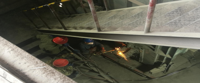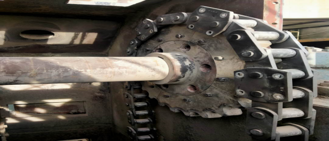 在1909斗提機(jī)尾輪、板鏈、料斗及機(jī)頭,進(jìn)行拆除更換。已完成機(jī)頭更換。