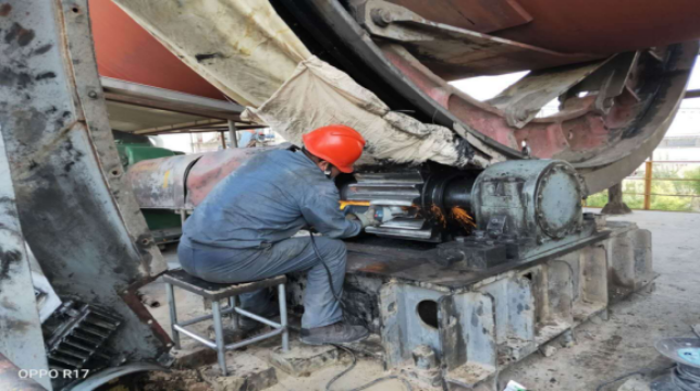 (7)回轉窯輪帶擋圈及墊板補焊加固,檢查大齒圈齒面磨損并對齒面打磨修復(未完成);