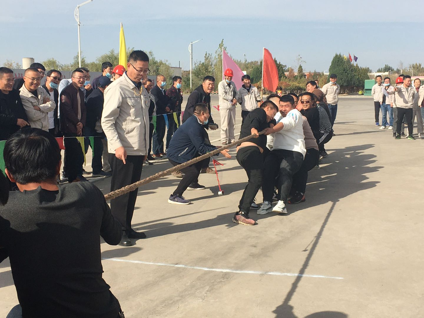 為豐富全體員工的精神文化生活,促進在職員工之間的交流,發(fā)揚團隊精神,增強凝聚力,公司于2020年10月14日-15日以橫班為單位組織了拔河比賽。