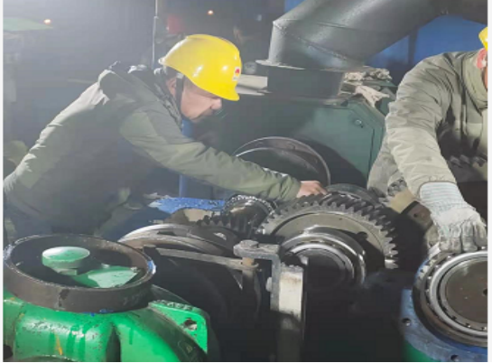 1月4日,塞北二九天氣,室外溫度已在零下16℃左右,傍晚夜幕降臨,員工們在燈火通明的回轉(zhuǎn)窯主減速機(jī)檢修現(xiàn)場,迎著寒風(fēng)刺骨,卻是熱火朝天,一派繁忙大干的景象。由于生產(chǎn)任務(wù)重,檢修時(shí)間緊,公司領(lǐng)導(dǎo)班子帶領(lǐng)員工克服種種困難,戰(zhàn)勝諸多不利因素,不畏嚴(yán)寒,加班加點(diǎn)趕進(jìn)度,爭分奪秒搶工期,積極推進(jìn)回轉(zhuǎn)窯主減速機(jī)恢復(fù)正常運(yùn)行。
