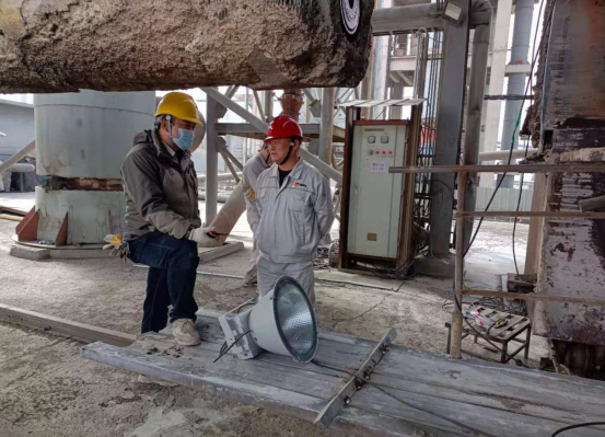 期間,此次檢修的片區(qū)業(yè)務指導領導有總調度長徐建華、設備工程師劉迪文深入現(xiàn)場進行指導工作。公司參檢人員為了搶時間,搶進度,副總經理梁軍組織人員一方面實行車輪戰(zhàn),以最快的速度清理完窯內物料,另一方面組織裝置專業(yè)技術人員鉆入熾熱的窯體內,進行窯磚回填。經過全體人員的連續(xù)不間斷的奮戰(zhàn),比計劃提前了3個小時。為確保搶修安全和質量,公司總經理、副總經理、安環(huán)生產科科長及成品裝置長始終盯靠在現(xiàn)場,對搶修工作進行指導和協(xié)調。