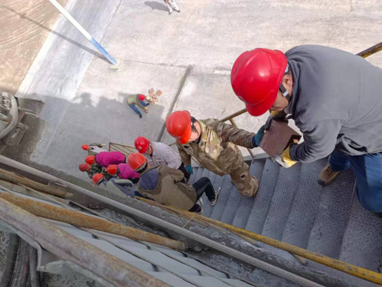4月11日晚間22時50分許,回轉窯筒體24.5米處出現(xiàn)紅窯現(xiàn)象,根據(jù)經驗,初步判斷是窯磚脫落;剞D窯系統(tǒng)止料,計劃挖補。安環(huán)生產科科長張振忠得知消息后,立即向各級領導進行了逐級匯報,他們不約而同的在第一時間趕回廠里,立即采取相應措施,迅速組織搶修。12日凌晨1:40分許,全體管理人員及崗位巡檢人員頂著寒風,組織實施第一步搶搶修工作——打開窯門,進行降溫。上午8:00分,公司領導緊急召開搶修前技術和安全交底,調集人員,冒著窯內高溫,進行邊卸料邊轉運邊挖補工作。按照分工,全體參戰(zhàn)人員都在緊張有序的忙碌著。