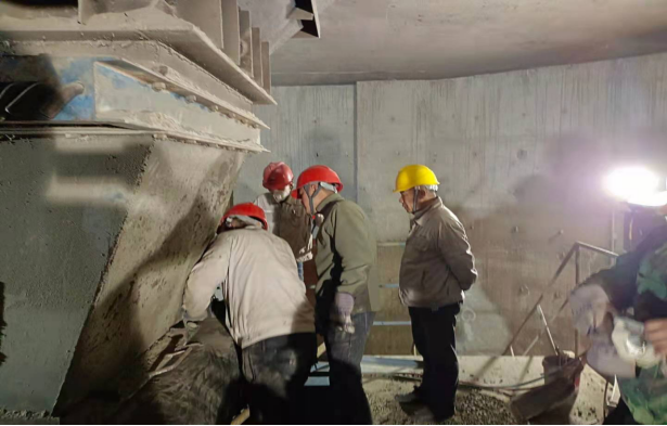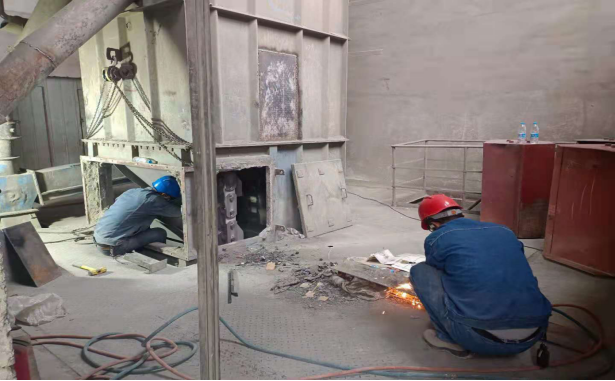 水泥磨檢查更換隔倉板、堆焊輥壓機(jī)輥面,技改v選入口分料裝置、調(diào)整v選揚(yáng)料板、穩(wěn)料倉,裝置長要求維修班全體人員在確保人員安全的前提下務(wù)必按時完成所有檢修項目,并調(diào)試運(yùn)行。雖然此次搶修任務(wù)時間緊迫,但安全永遠(yuǎn)是排在第一位。在工作前,按照屬地管理原則,層層對檢修作業(yè)人員進(jìn)行安全技術(shù)交底,要求檢修人員臨邊作業(yè)時必須要戴好安全帶,帶好耳塞和口罩,每位作業(yè)人員進(jìn)行危險源辨識完成后才能進(jìn)行作業(yè)