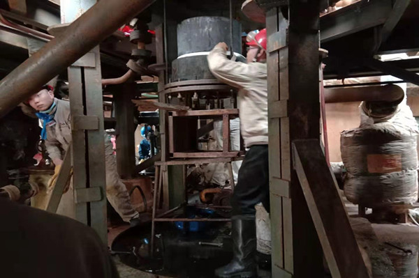 燈頭是蒸汽爐最核心的部件,它就如同蒸汽爐的“心臟”,保證著蒸汽爐的安全平穩(wěn)運行。由于燈頭是石英材質(zhì),不能有任何碰撞。有著二十年檢修工作經(jīng)驗沈培銀老師傅,像一名“將軍”一樣,指揮著大家拆燈頭,滿身的油污,像軍功章一樣掛在他的胸前。只見他拿來三根全絲螺桿,均勻地固定在燈頭支座上,隨著三只螺母的松動,燈頭就開始慢慢地向下移動,為了保證燈頭的平穩(wěn)下落,三個人必須同時松動螺母,這需要高度默契地配合。 沈培銀老師傅不緊不慢地松動著螺母,并時刻提醒著其他兩個人的進(jìn)度。汗水早已濕透了三人的衣服,裹挾著污漬的汗水不停地順著他們的臉頰滴落。愛開玩笑的同事,不失時機地說個笑話,逗得大家哈哈大笑,身上的疲憊感頓時消減幾分。