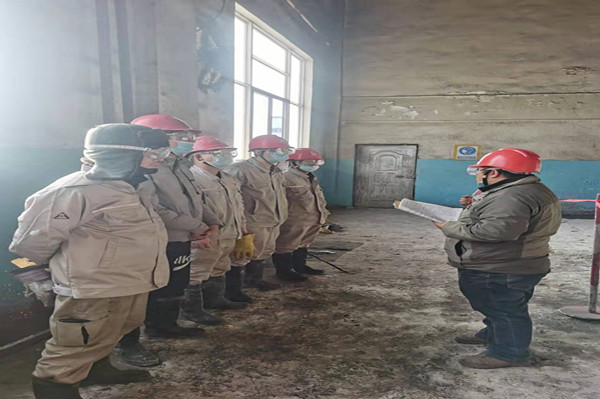 早上7:30分,只見參加檢修的維修工和操作工早已換好工作服全部抵達(dá)99%堿崗位,列隊(duì)站好聽從裝置長(zhǎng)和安全員在檢修前安排的各自職責(zé)分工,并且對(duì)需要作業(yè)的項(xiàng)目進(jìn)行了安全技術(shù)交底。此次檢修時(shí)間緊、任務(wù)重、勞動(dòng)強(qiáng)度大,人員有各裝置派來協(xié)助的維修工和崗位操作工,大家齊心協(xié)力,不怕困難,一定要保質(zhì)、保量地完成所有檢修任務(wù),并做到“四不傷害”絕不能出現(xiàn)任何人身傷害事故發(fā)生。