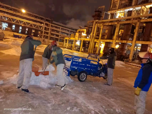 正月初五,固原迎來了2022年的第一場雪。堅守夜班的化工橫一班接班后,調(diào)度就對橫一班員工強(qiáng)調(diào):“今天白天下了一天雪,晚上氣溫肯定會下降,現(xiàn)場巡檢時一定要注意防滑,上下樓梯抓好扶手,穩(wěn)走慢行。防凍防凝是巡檢重點(diǎn)內(nèi)容,大家要加大巡檢力度和頻次,尤其是要保證保溫伴管、排污閥、疏水閥等關(guān)鍵部位正常,操作人員要認(rèn)真監(jiān)控,及時觀察控制參數(shù)的變化情況,精準(zhǔn)調(diào)控,確保安全生產(chǎn)運(yùn)行”。一場大雪后,固原市銀裝素裹,人們在盡情地享受瑞雪樂趣。但在廠區(qū)內(nèi)“沙沙”聲、“咣咣”聲不絕于耳,當(dāng)班的班組長及員工“以雪為令”,迅速行動,不畏嚴(yán)寒,揮舞著鐵鍬、掃帚、簸箕等一切能派上用處的除雪工具,你鏟我掃相互配合,全面徹底清理室外道路、巡檢通道、裝置現(xiàn)場等區(qū)域的積雪和凍冰,經(jīng)過數(shù)小時的奮戰(zhàn),現(xiàn)場干凈整潔,切實保證了裝置安穩(wěn)生產(chǎn)。
