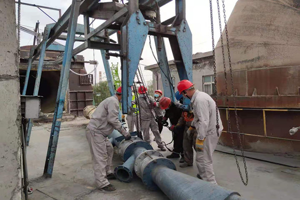 團隊是什么,是為了實現(xiàn)一個共同的目標(biāo)而集合起來的人。 任何一個人的力量都是渺小的,只有融入團隊,只有與團隊一起奮斗,勁往一處使,你才能實現(xiàn)個人價值的最大化,你才能成就自己的卓越!伴隨副總經(jīng)理一聲令下,所有人員喊著豪邁的口號,配合吊機的力臂推動著奇重?zé)o比的噴煤管一點一點的前行。又一會功夫?qū)⒒剞D(zhuǎn)窯門緩緩調(diào)至檢修現(xiàn)場安全的位置。