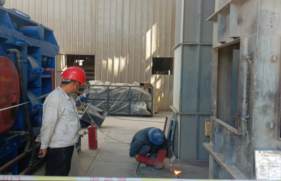 最繁忙、最艱苦的時(shí)段,從上午6:00分至下午17:20分,他們頂酷暑堅(jiān)守在挖補(bǔ)窯磚、更換噴煤管的一線現(xiàn)場(chǎng)。烈日下,有的實(shí)施清理挖補(bǔ)窯磚、有的丈量計(jì)算、有的指揮進(jìn)行吊裝、有的進(jìn)行切割、焊接……