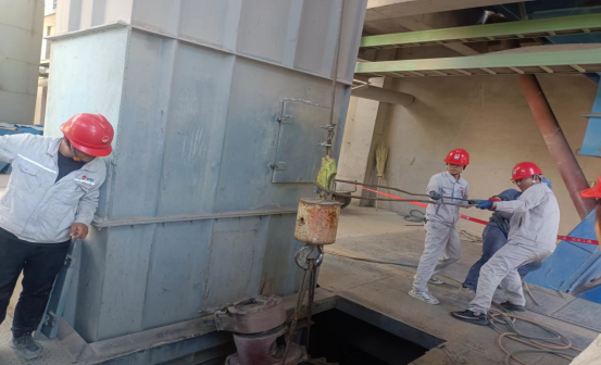 更換生料1909提升機(jī)鏈條和料斗現(xiàn)場(chǎng):他們無(wú)懼“烤”驗(yàn) ,“汗”衛(wèi)設(shè)備有效運(yùn)行。檢修中,他們手持焊槍,用一片赤忱,“汗”衛(wèi)設(shè)備長(zhǎng)周期穩(wěn)定運(yùn)行,在太陽(yáng)曝曬下,設(shè)備溫度已達(dá)40℃左右,有限高溫作業(yè),一會(huì)兒焊接,一會(huì)兒切割,一會(huì)兒又是安裝……他們堅(jiān)守一道道安全之門(mén),即使皮膚曬得黝黑,汗水濕透衣衫,依然為的是安全生產(chǎn)穩(wěn)定保駕護(hù)航!
