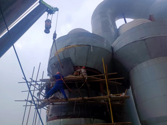 為了保證產(chǎn)品質(zhì)量、⽣產(chǎn)穩(wěn)定、設(shè)備⾼效運⾏。當(dāng)接到任務(wù)的那一刻起,全體參“戰(zhàn)”人員,圍繞補焊“烘干破旋風(fēng)筒,穩(wěn)定窯生產(chǎn)”這一工作重心,迅速集結(jié),在總經(jīng)理吳紅衛(wèi)同志的帶領(lǐng)下,公司領(lǐng)導(dǎo)班子、安環(huán)生產(chǎn)科、成品裝置等管理人員一邊召開現(xiàn)場研判分析會,定方案、備材料,定人員;一邊圍繞搶修任務(wù),按照檢修周期以“應(yīng)修盡修、應(yīng)檢盡檢”的原則要求,舉一反三,見縫插針,開展總動員,做好各臨時作業(yè)區(qū)檢修⽅案和推進工作,周密組織⼈⼒物⼒投⼊到檢修之中。清理電收塵積灰、檢查更換電收塵極絲、更換大布袋收塵器濾袋、清理預(yù)熱器結(jié)皮、碎化窯內(nèi)結(jié)蛋等⼤⼩20余項檢修任務(wù),集⾃⾝⼒量,同⼼協(xié)⼒、不畏苦累,全體參“戰(zhàn)”人員36⼩時晝夜不停,全⼒以赴投身到檢修當(dāng)中,于8月17日傍晚21:20分順利完成此次搶修。