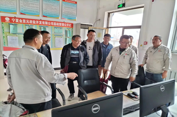 2022年8月25日上午,自治區(qū)綠色礦山建設考評驗收小組組長朱平,帶領綠色礦山建設考評驗收小組,在原州區(qū)自然資源局礦產(chǎn)科張主任的陪同下,蒞臨金昱元巖鹽開發(fā)公司開展綠色礦山建設第一次考評驗收工作。公司總經(jīng)理尚繼榮、副經(jīng)理莊濤及采鹵副總工程師溫艷廷等陪同檢查。