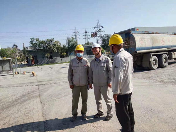公司安全總監(jiān)鄒永清、副總經(jīng)理馬澤陪同專家組深入生產(chǎn)現(xiàn)場,對(duì)工藝流程、操作人員的勞動(dòng)防護(hù)用品、設(shè)備運(yùn)行情況向?qū)<医M逐一進(jìn)行講解。