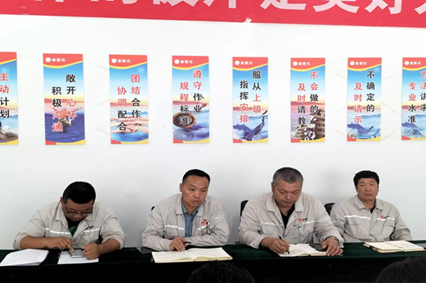 會上,各主管副經(jīng)理和采鹵副總工程師從安全管理、檢修質(zhì)量、檢修進度、現(xiàn)場管理、人員激勵等方面做出要求,并表態(tài)在自己分管的檢修工作范圍內(nèi),會安全高效完成檢修任務,確保檢修期間無安全環(huán)保事故發(fā)生。