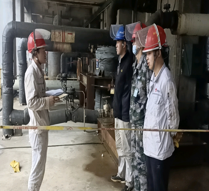 為了保證安全、優(yōu)質(zhì)、高效地完成任務(wù),在班長黃小龍的帶領(lǐng)下,進(jìn)行零脫析再沸器管線拆除安全技術(shù)交底,裝置工藝技術(shù)員張?zhí)烊适俏覀兊谋O(jiān)護(hù)人,除此之外,單位領(lǐng)導(dǎo)更是親自到檢修一線指導(dǎo)工作,把安全關(guān),把質(zhì)量關(guān),隨時協(xié)調(diào)處理現(xiàn)場遇到的問題。