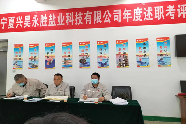 2022年12月4日上午,寧夏興昊永勝鹽業(yè)科技有限公司組織召開2022年度管理人員述職考評會,聽取管理人員履職情況、管理目標(biāo)和重點(diǎn)工作完成情況、分管工作和本人履職中存在問題及下一年的工作思路。