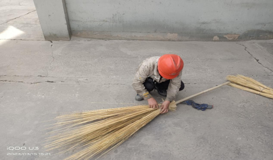 他,一個(gè)平時(shí)不善言語的人,正在專心致志地用一根鐵絲修復(fù)芨芨草大掃帚。掃帚的上面已經(jīng)散開,掃地時(shí)聚攏不到一起,并且會(huì)大量折折散落,但在他的手中已經(jīng)變成了一把緊湊的實(shí)用工具。我看著他剛想說什么,他卻笑著說:“你看咋樣?這樣還能用很久呢”。