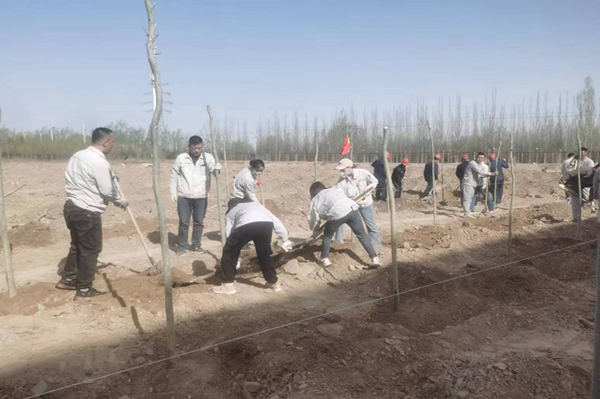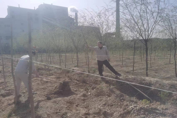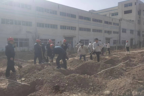 春光明媚的四月,萬物復(fù)蘇,春風(fēng)吹綠了枝頭上的嫩芽,吹綠了地上的小草,大地上的每一個(gè)角落都充滿了春天的氣息。在這美好的季節(jié),公司全體領(lǐng)導(dǎo)干部和一線員工積極、主動參與植樹活動。植樹現(xiàn)場,大家干勁十足,挽起衣袖、拿起鐵鍬,為一棵棵新樹苗安置"新家"。今年種植新疆楊2200多棵、絲綿木650棵、大松樹近300棵、小榆樹30000棵,為新的春天又增添了一抹盎然的綠意?粗且黄约河H手種下的樹苗在微風(fēng)中搖曳,無不露出幸福的笑容,在一張張的照片中和鏡頭里留下了自己美好的回憶。