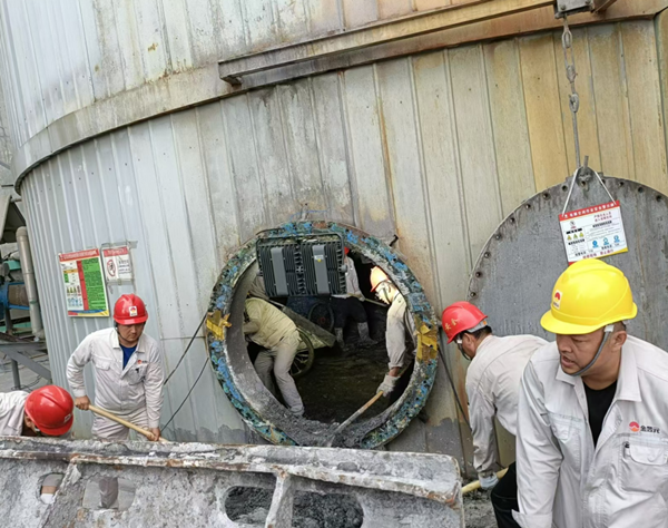 人在專(zhuān)注干一件事的時(shí)候是最帥氣的,盡管他們身上滿是油污,也掩蓋不住他們認(rèn)真、擔(dān)當(dāng)和富有責(zé)任感的品質(zhì)。他們把每一次檢修都當(dāng)成一次全新的挑戰(zhàn),把每一次檢修都當(dāng)做一次經(jīng)驗(yàn)的積累,一張張布滿油污、灰塵的面孔,綻放出最為清澈和動(dòng)容的笑容。你看,脫硫塔檢修現(xiàn)場(chǎng),他們?cè)跐M是泥水的脫硫塔內(nèi)來(lái)來(lái)回回奔跑了無(wú)數(shù)次,泥污沾滿了全身每一個(gè)地方,不知是汗水還是泥水打濕了衣服。他們干活不分你我、不惜力氣、相互配合,安全高效地完成了料液清理工作,為脫硫塔消漏、防腐做好了準(zhǔn)備工作。