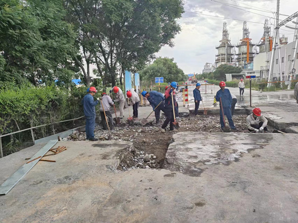 廠區(qū)道路修繕工作存在邊修復(fù),邊疏通車輛同行,時間緊、任務(wù)重等諸多困難,但公司干部職工發(fā)揚不怕苦、不怕累的精神,上下齊心、同心協(xié)作,有信心安全、保質(zhì)、按計劃完成修補工作。