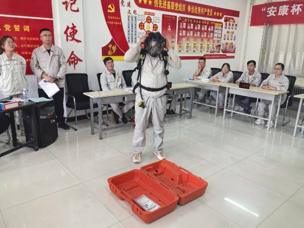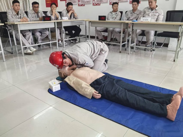 比賽現(xiàn)場(chǎng),參賽隊(duì)員們個(gè)個(gè)精神抖擻、斗志昂揚(yáng)!靶姆螐(fù)蘇操作”“正壓式空氣呼吸器穿戴”兩個(gè)項(xiàng)目,選手們爭(zhēng)分奪秒?yún)s有條不紊:檢查患者意識(shí)和呼吸、檢查氣瓶壓力、調(diào)整背帶松緊、佩戴面罩并測(cè)試氣密性……一套流程行云流水,展現(xiàn)出扎實(shí)的技能功底與高度的安全意識(shí);顒(dòng)現(xiàn)場(chǎng),公司安全總監(jiān)鐵旭東、安全主管何寧、海什全程監(jiān)督評(píng)分,并針對(duì)操作細(xì)節(jié)進(jìn)行實(shí)時(shí)監(jiān)控,將比賽轉(zhuǎn)化為安全培訓(xùn)課堂,達(dá)到競(jìng)賽和培訓(xùn)相結(jié)合。參賽職工紛紛表示,通過(guò)比武不僅提升了應(yīng)急處置能力,更深刻體會(huì)到規(guī)范操作的重要性。