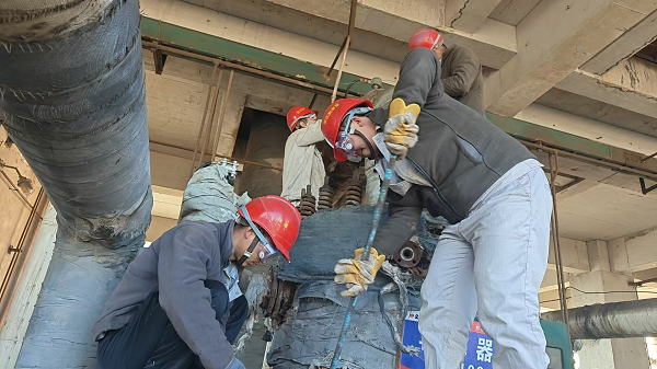 本次檢修任務(wù)繁重,但檢修人員卻干勁十足。他們有的拆卸螺栓,有的進(jìn)行吊裝,有的開(kāi)展焊接……他們配合默契,動(dòng)作精準(zhǔn),工作井然有序。他們以勇于擔(dān)當(dāng)?shù)呢?zé)任感和時(shí)不我待的使命感攻克難關(guān),用實(shí)際行動(dòng)勾勒出了一幅幅彰顯勞動(dòng)之美的畫(huà)卷。