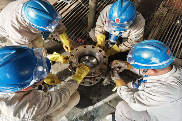 大型球閥的檢修是一項(xiàng)對(duì)精度要求極高的工作。從拆解閥體、檢查閥芯,到更換密封件、研磨密封面,每一個(gè)步驟都容不得半點(diǎn)馬虎。在高溫、高噪的現(xiàn)場環(huán)境中,檢修人員不僅要對(duì)抗體力消耗,更要保持高度的專業(yè)嚴(yán)謹(jǐn)。為了確保密封性能達(dá)標(biāo),他們反復(fù)測量密封面的平面度,用細(xì)砂紙手工研磨,直到達(dá)到工藝標(biāo)準(zhǔn);在回裝螺栓時(shí),嚴(yán)格按照對(duì)角順序和規(guī)定力矩緊固,避免因受力不均導(dǎo)致泄漏。作業(yè)中,有人佩戴著防護(hù)眼鏡與防毒面具,這既是對(duì)操作規(guī)程的遵守,更是對(duì)自身安全與生產(chǎn)責(zé)任的雙重?fù)?dān)當(dāng)。