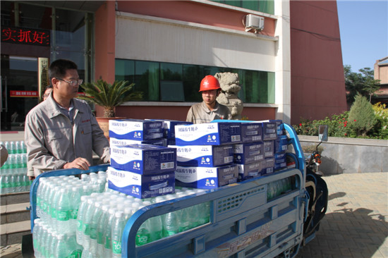 “炎炎夏日送清涼,絲絲關(guān)愛(ài)入心田”,7月16日青銅峽市總工會(huì)帶著對(duì)堅(jiān)守在烈日下工作的一線(xiàn)勞動(dòng)者的關(guān)懷,為我公司送來(lái)了防暑降溫的物品,使處在高溫下的勞動(dòng)者心頭感到絲絲清涼。
