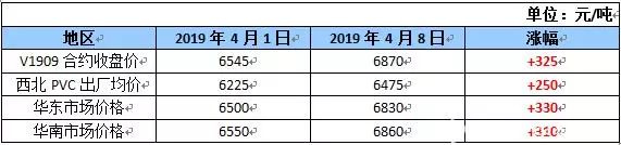 沉寂3個月的PVC,踏入4月后表現(xiàn)可謂突飛猛進。尤其在PVC期貨實現(xiàn)移倉換月后,漲價動能得到充分激發(fā),大舉突破震蕩狀態(tài),從4月1日至4月8日,大商所V1909合約收盤價漲幅近5.0%。而PVC生產廠家在庫存低位的情況下看漲情緒較強,助推漲價潮在短時間內愈演愈烈。