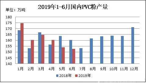 圖3 2019年1-6月國(guó)內(nèi)PVC粉產(chǎn)量