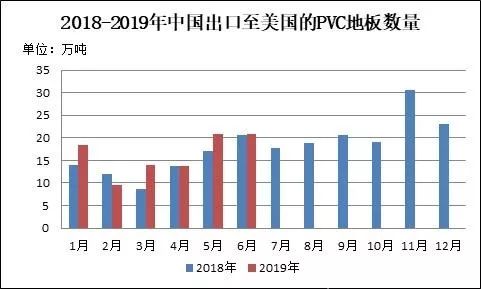 圖10 2018-2019年中國(guó)出口至美國(guó)的PVC地板數(shù)量