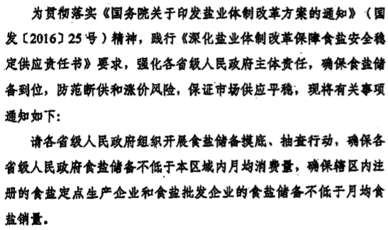 國務院《鹽業(yè)體制改革方案》規(guī)定: