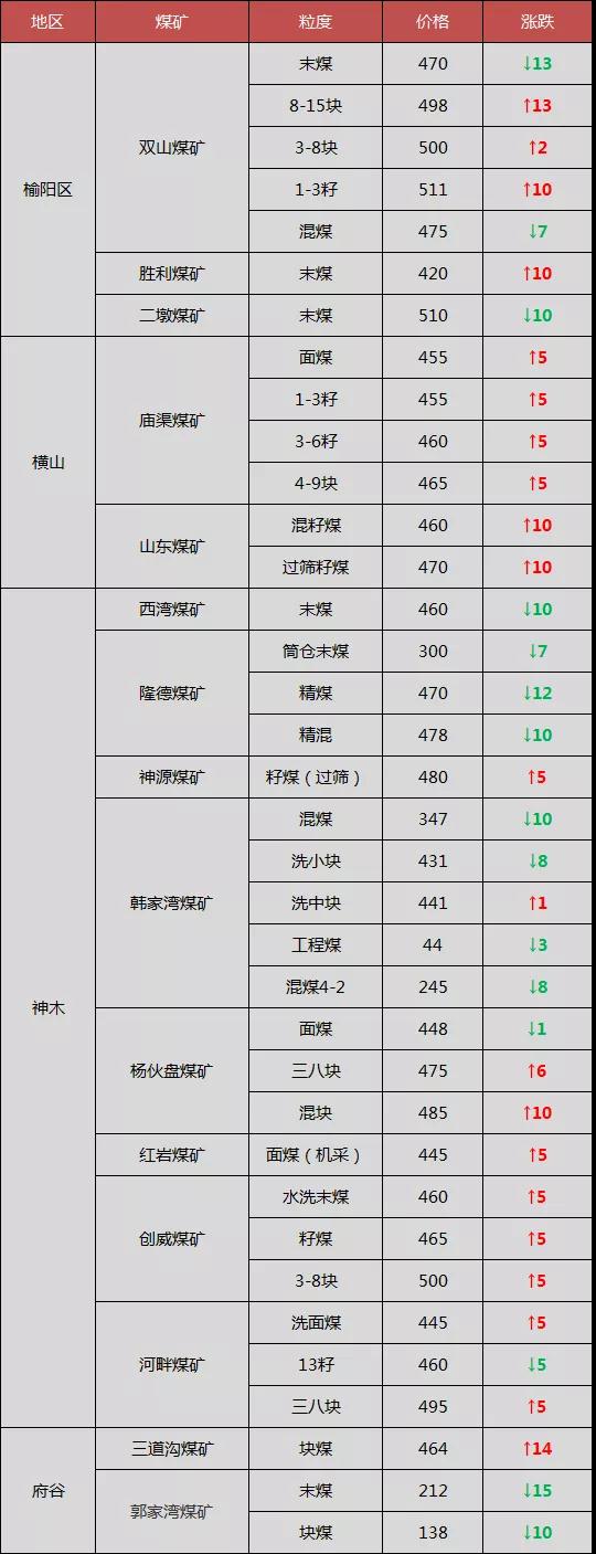 最新調價煤礦: