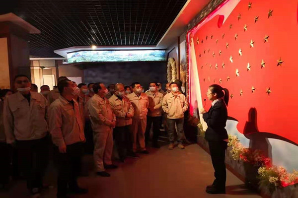 活動結(jié)束前,大家聚集在黨旗下,鄭重公諾,表示要以昂揚的姿態(tài)奮進“十四五”、奮進新征程,爭當排頭兵,干在先,走在前;要不忘初心、牢記使命,繼承先輩遺志,讓紅色基因代代相傳,表達對革命先烈的感恩與敬仰。