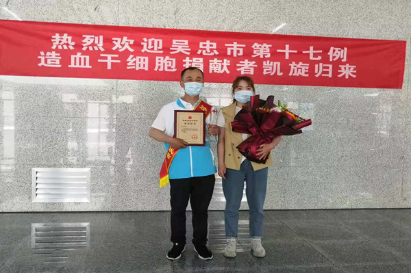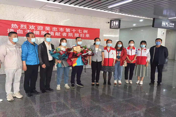 5月12日,劉治成返回吳忠,集團(tuán)公司黨委副書(shū)記王立軍、支部書(shū)記唐亮等領(lǐng)導(dǎo),熱烈迎接這位造血干細(xì)胞捐獻(xiàn)者獻(xiàn)凱旋歸來(lái)。