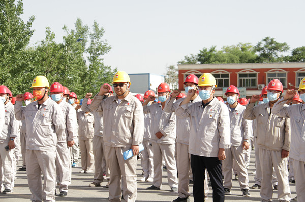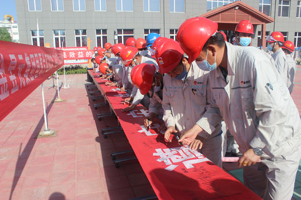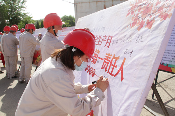 公司領導和職工代表莊嚴宣誓,承諾深入貫徹落實黨中央、國務院關(guān)于安全生產(chǎn)的重大決策部署,牢固樹立安全發(fā)展理念,以防范化解重大風險、及時消除安全隱患、堅決遏制生產(chǎn)安全事故,矢志不渝堅守安全紅線意識和底線思維,從我做起、從細節(jié)做起,高標準、嚴要求抓好安全管理,共同維護企業(yè)安全穩(wěn)定局面。