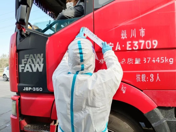 2022年10月7日金昱元化工集團(tuán)固原片區(qū)慰問(wèn)固原北防疫卡點(diǎn)
