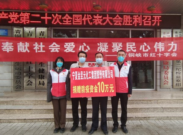 2022年10月19日金昱元化工集團(tuán)向青銅峽市紅十字會(huì)捐贈(zèng)10萬(wàn)元防疫資金