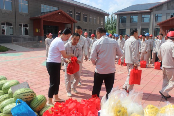 青銅峽市總工會(huì)和固原經(jīng)濟(jì)開發(fā)區(qū)總工會(huì)為集團(tuán)公司送來(lái)西瓜、礦泉水、金絲菊、冰糖等防暑物品,表達(dá)對(duì)企業(yè)一線員工關(guān)心和厚愛(ài)。