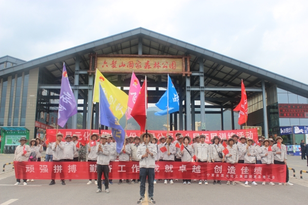 早晨8:30,參加拓展訓(xùn)練人員從公司東門(mén)口集合出發(fā),乘坐旅游巴士一路歡歌,共赴六盤(pán)山森林公園,沐浴綠野清風(fēng),與六盤(pán)山水來(lái)一場(chǎng)久違的約會(huì)。