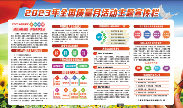 今年 9 月份是全國第 46個“質量月”,為深入貫徹習近平新時代中國特色社會主義思想,全面貫徹落實黨的二十大精神,夯實質量基礎,營造重視質量良好氣氛,引導和發(fā)動廣大員工增強質量意識,積極參與“質量月”活動,推動企業(yè)又好又快發(fā)展,寧夏金昱元化工集團股份有限公司組織開展“質量月”活動。
