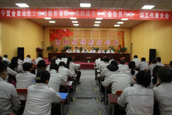 瑞雪迎春好時(shí)節(jié),奮楫揚(yáng)帆新征程。1月19日下午,寧夏金昱元化工集團(tuán)股份有限公司召開第四屆五次職工代表大會。集團(tuán)公司工會主席尚興,副主席李新,集團(tuán)公司副總裁、青銅峽片區(qū)總經(jīng)理張立軍等領(lǐng)導(dǎo)及各單位100余名職工代表參加了會議。會議由集團(tuán)公司工會副主席李新主持。